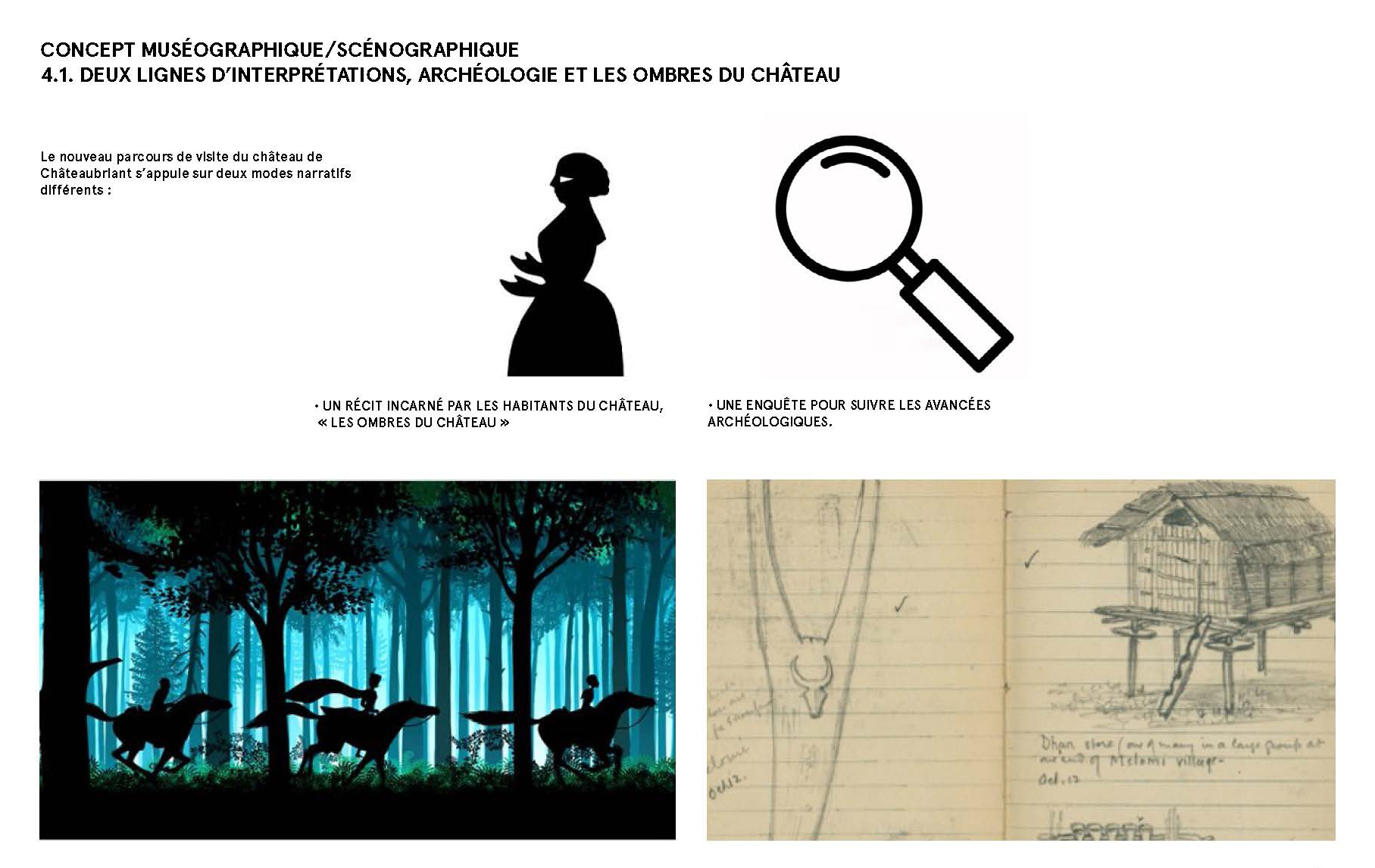 L’animation de la grande maquette du site par plusieurs fenêtres (saynètes) pour faire vivre, en audiovisuel muet, sous forme d’ombres, les différents usages du château et l’occupation par ses habitants.
