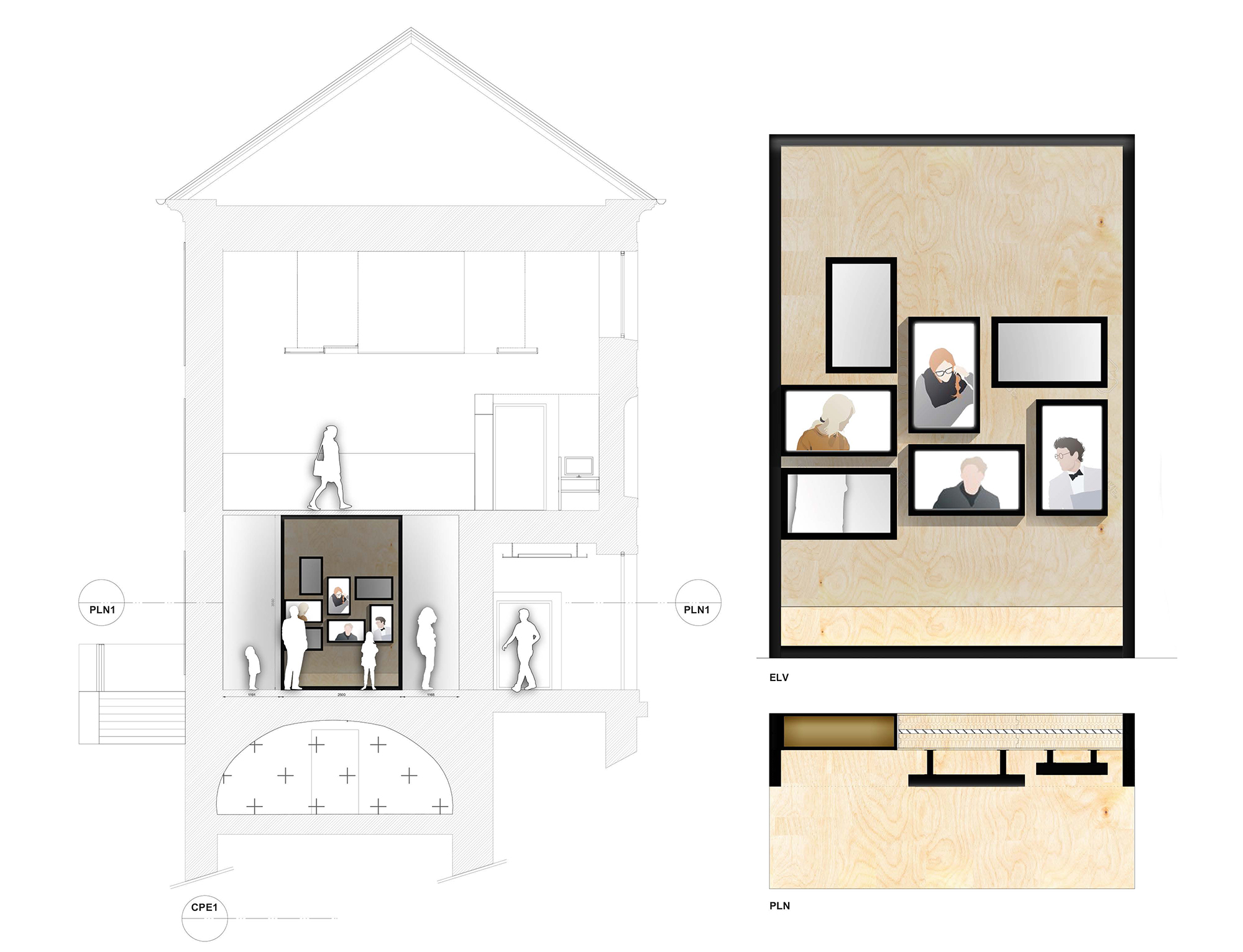 Introduction du parcours permanent de la Cité des Paysages, un dispositif narratif audiovisuel, “Points de vue sur le paysage”, isole l’accueil de la Halle, lieu polyvalent.